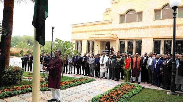 মঙ্গলবার সকালে রিয়াদ অবস্থিত বাংলাদেশ দূতাবাস চত্বরে জাতীয় সংগীতের সঙ্গে জাতীয় পতাকা উত্তোলন করেন সৌদি আরবে নিযুক্ত বাংলাদেশের রাষ্ট্রদূত মো. দেলওয়ার হোসেন। এরপর দূতাবাসে স্থাপিত অস্থায়ী স্মৃতিসৌধে ফুল দিয়ে শ্রদ্ধা